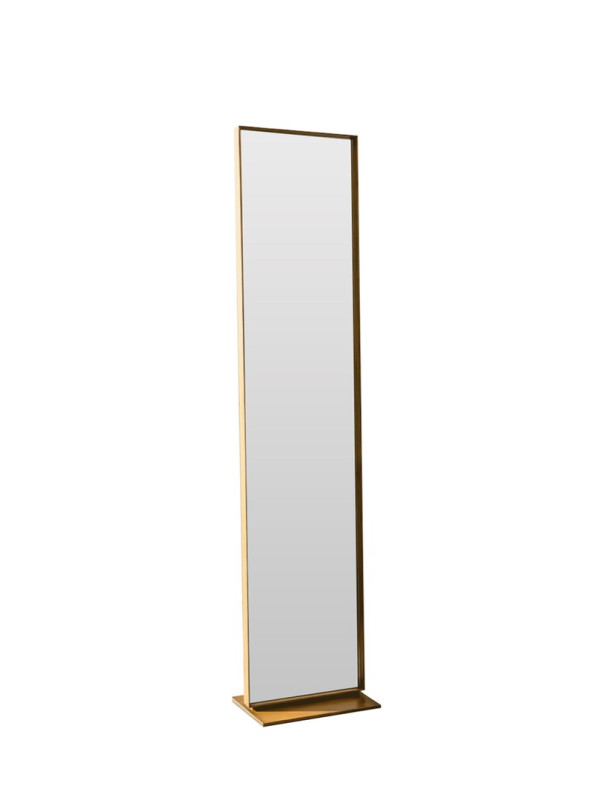 Тонкая стальная рама и основание зеркала покрыты краской порошковым методом, что придает изделию насыщенный золотой цвет. Опора зеркала компактная по форме и при необходимости зеркало можно переместить на новое место.